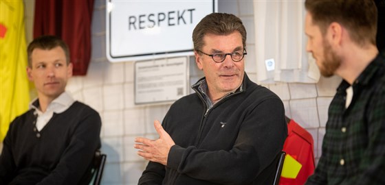 FCN-Sportvorstand Dieter Hecking sprach sich am Abend der Unterzeichnung der Sportplatz-Etikette im ClubHaus für eine konsequente Linie gegen Unsportlichkeiten aus.