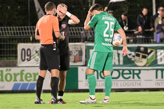 Die Partie begann zwar mit einer Reihe an Eckbällen für die Gäste, die aber allesamt verpufften. Ansbach lauerte auf die Momente, um zuzustechen. Beim Doppelpass zwischen Puscher und Kroiß fehlte Erstgenannten der berühmte Schritt (9.), Manz wurde in aussichtsreicher Position durch eine von vielen knappen Abseitsentscheidungen zurückgepfiffen (12.) und eine Kroiß-Ablage von der Grundlinie wurde durch die Gäste noch geklärt (14.). Für einen kurzen Schreckmoment sorgte Ansbachs Keeper Schiefer, als er im Spielaufbau Stoßberger anschoss, der Ball aber zum Glück der Hausherren im Toraus landete (18.).