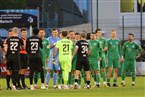 Sascha Hingerl (l.) raubte Tobias Dietrich per Handspiel auf der Linie ein sicheres Tor, dafür gab es die Rote Karte und einen Elfmeter, den Eric Weeger gewohnt sicher zum 1:0 verwandelte.