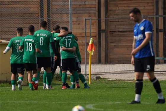 Dass aus dem Führungstrio inzwischen ein Duo geworden ist, lag an der Niederlage des SC Germania II: Die Germanen zogen auswärts beim SV Maiach-Hinterhof (in grün) mit 2:3 den Kürzeren und rutschten damit von der Spitze.