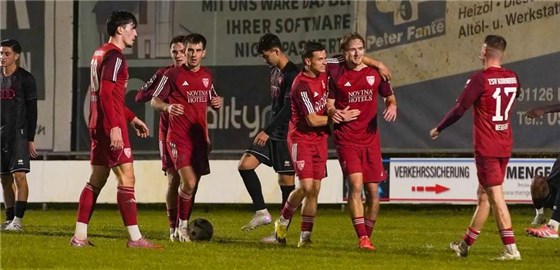 Kornburgs Justin Kussmann (2.v.r.) bejubelt seinen Treffer zum zwischenzeitlichen 1:1-Ausgleich.