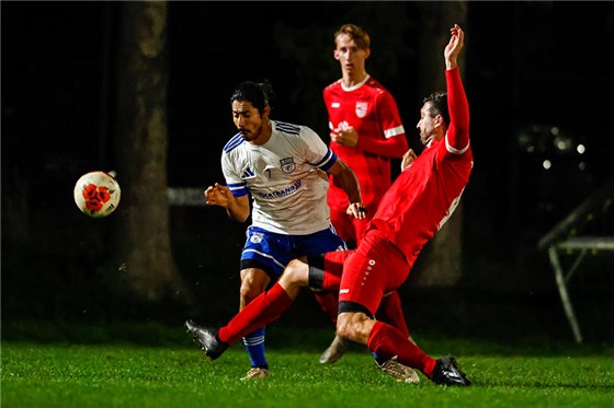 Der SV Burggrafenhof (in rot) kam mit zwei späten Toren am Freitagabend noch zu einem 3:3 beim GSV Megas Alexandros.