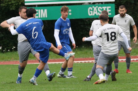 In einem umkämpften, aber nie unfairen Spitzenspiel fand der TSV Langenzenn (in blau) mit einem 2:0 beim FC Serbia das bessere Ende für sich.