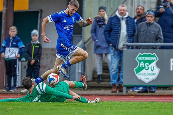 Viel Intensität, aber keinen Sieger gab es derweil in Veitsbronn zu sehen, wo sich der ASV Veitsbronn-Siegelsdorf (in grün) und der TSV Altenberg (blau) mit einem 1:1-Unentschieden trennten.