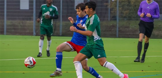 Die SpVgg Mögeldorf 2000 II (in blau) war auf dem Kunstrasen der SF Großgründlach zwar früh in Unterzahl, gewann die Partie aber trotzdem problemlos und letztlich deutlich mit 6:0.