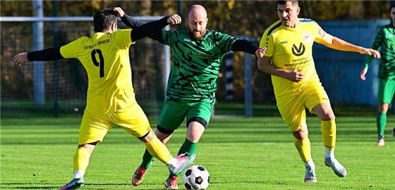 Der ASV Weinzierlein um Niklas Henn (in grün) kam trotz 0:2-Rückstand zu einem 3:2-Heimsieg gegen Megas Moldova.