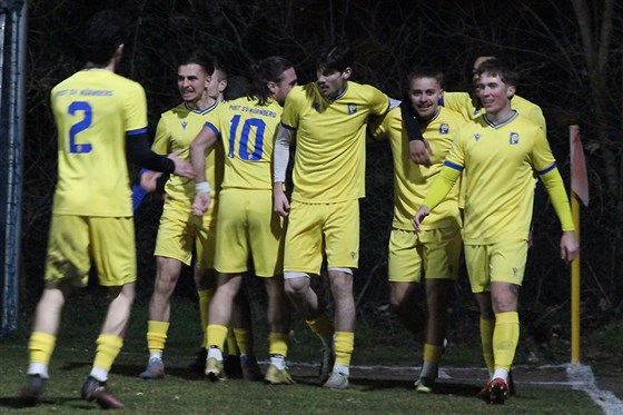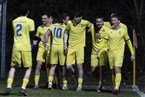 Luca Englhard (2.v.r.) traf nach elf Minuten zur Führung des Post SV und durfte sich von seinen Teamkollegen feiern lassen.