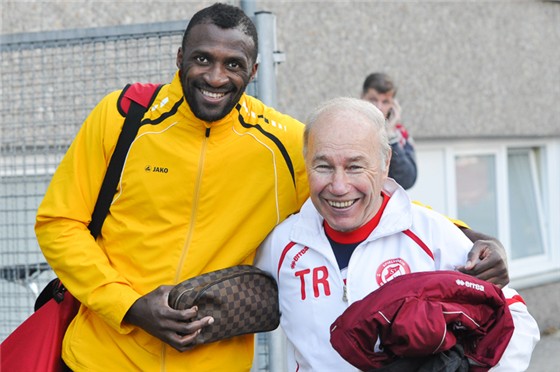 Francis Kioyo und Karsten Wettberg – zwei alte 1860er nach dem Spiel des SV Seligenporten gegen Bayreuth.