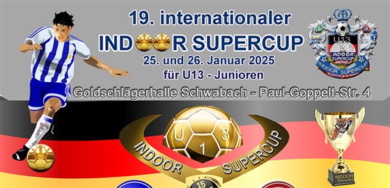 Bereits zum 19. Mal findet am Wochenende der internationale INDOOR SUPERCUP für U12/13-Junioren in der Schwabacher Goldschlägerhalle statt. Am Samstag steigt um 9 Uhr die Silberrunde schon mit einigen namhaften Teams aus der Region - und weit darüber hinaus. In der Goldrunde ab 14 Uhr greifen dann mehrere Bundesliga-Nachwuchsteams ein. Am Sonntag gibt es noch einen Nachschlag an hochklassigen Junioren-Hallenfußball.