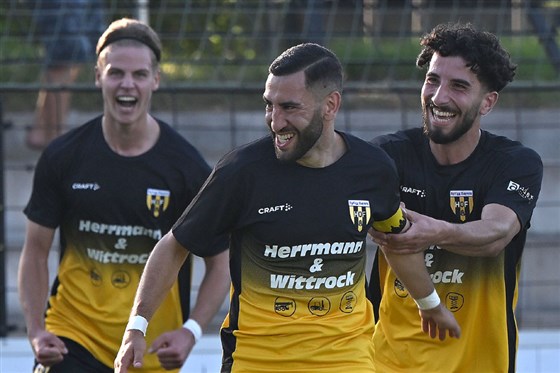 Breites Grinsen: Kaan Gezer (Mitte) lässt sich zum 2:0 beglückwünschen.