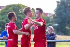 Zunächst legten die Gäste los wie die Feuerwehr, insbesondere mit dem quirligen Kay Ramthun, der nach feiner Einzelleistung auch gleich die erste Möglichkeit in der 8. Spielminute hatte: Zum Glück für die Heimelf zielte er etwas zu genau, sodass das Leder vom Innenpfosten direkt in die Arme von Keeper Moritz Weis sprang. In der 16. Minute hätte der SV Unterreichenbach in Führung gehen können: Nach Pass von Xaver Distler in den Lauf von Joshua Kurz schoss dieser allein vor dem Gäste-Schlussmann über das Fürther Gehäuse. Nur zwei Zeigerumdrehungen später war es wieder auf der anderen Seite eine klasse Parade von Moritz Weis gegen Kakavas. Die Begegnung wogte hin und her – in der 20. Minute wurde ein Kopfball von Xaver Distler aus aussichtsreicher Position gerade noch abgewehrt. In der 25. Minute zappelte das Leder dann aber doch im Fürther Netz: Kapitän Xaver Distler zog am Quelle-Keeper vorbei und erzielte aus spitzem Winkel das 1:0. Die „Urus“ blieben am Drücker und Joshua Kurz hatte in der 28. Minute das 2:0 auf dem Fuß, doch er verfehlte sein Ziel aus kurzer Distanz. In der 43. Minute verpasste Xaver Distler eine halbhohe Flanke von Joshua Kurz nur um Haaresbreite. Wie aus dem Nichts dann der 1:1-Ausgleich (44.). Nach einem weiten Abschlag des Gäste-Torhüters ließ Schimm das Leder einmal aufhüpfen und traf mit einer sehenswerten Bogenlampe ins Unterreichenbacher Tor.