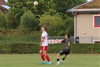 Nach der Auftaktniederlage in Schwabach startete der TSC hochmotiviert in die Landesliga-Partie der Vereinsgeschichte. Die 400 Zuschauenden sahen zu Beginn eine offene Partie mit Chancen auf beiden Seiten. Während die erste Einschussmöglichkeit der sympathischen Gäste aus Lauterhofen von der Heimdefensive vereitelt werden konnte, scheiterte Ortner im Gegenzug an seinem starken Namensvetter Ortner im Gästetor. Einen Fernschuss von Maximilian Hirschmann konnte der junge Schlussmann noch sehenswert über den Querbalken lenken, musste aber dennoch in der 38. Minute hinter sich greifen: Einen Fehler im Aufbauspiel der Gäste spielten die Dettelsauer Jungs souverän aus, sodass Ortner den Ball nur noch ins leere Tor schieben musste. Sieben Zeigerumdrehungen später und kurz vor dem Pausenpfiff egalisierten die Gäste nach einem Freistoß die Führung: Geitner netzte nach einem Freistoß aus kurzer Distanz ein, weil die Heimelf den vorhergehenden Freistoß nicht konsequent klären konnte.