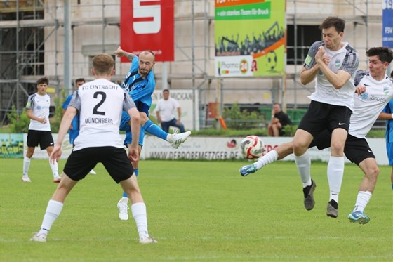 Bruck hätte bereits zur Pause höher führen müssen, spätestens eine Minute nach Wiederanpfiff. Erneut versagte Guiliano Nyary kläglich. Samuel Arles hatte vor dem Tor quer gepasst. Der Stürmer hätte nur den Fuß hinhalten brauchen, brachte aber das Kunststück zustande, den Ball noch neben das Tor zu lenken. Nach einer Stunde hatte Münchberg-Trainer Markus Bächer genug gesehen. Er wechselte dreifach - und was für ein Wechsel. Direkt in der anschließenden Szene, der eingewechselte Kevin Winter war bereits beteiligt, erspielten sich die Gäste die erste gute Chance des Spiels, die Lucas Köhler mit seinem siebten Saisontreffer zum 1:1 vergoldete. Eine Minute nach dem Dreifachwechsel. Zu diesem Zeitpunkt hätte das Spiel kippen können. Bruck wirkte aber nach ein paar Minuten, angetrieben von Co-Coach Alexander Piller, sofort wieder gefestigt. Piller selbst versuchte er mehrmals aus der Distanz, kam aber dem Gehäuse nicht unbedingt sonderlich nahe. So lief alles auf ein Unentschieden hinaus.