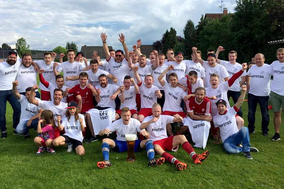 Die SpVgg Hessdorf 2 jubelt über den Aufstieg.