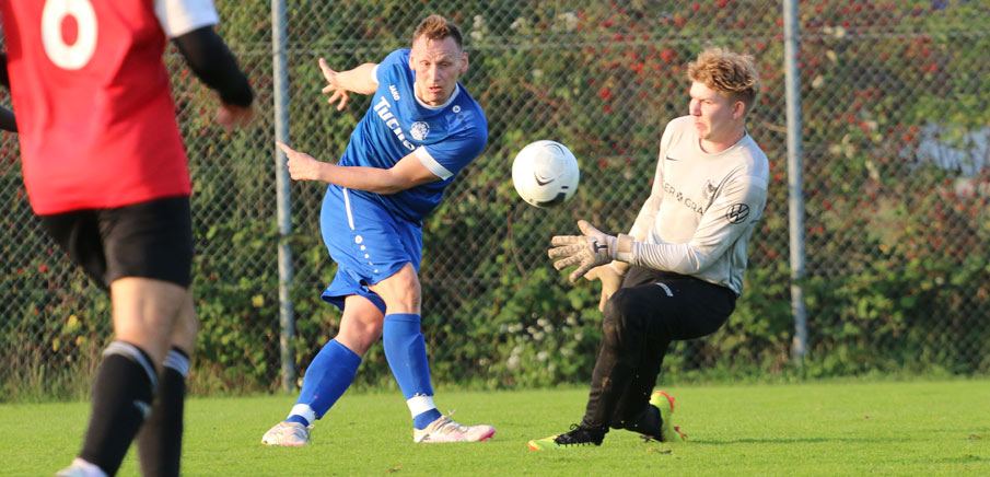 Am Sonntag dann zeigte sich der Post SV II (in gelb) offensivfreudig beim Schlusslicht ASV Fürth II. Auch wenn dieser Versuch von Terrence Omoregbee nicht den Weg ins Tor fand, am Ende stand ein klarer 6:1-Auswärtssieg der Ebensee-Kicker.