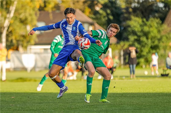 Volkan Akbulut und Vatanspor (in rot) setzten sich dagegen mit 2:1 im Duell der Bezirksliga-Absteiger durch - daran änderte auch ein Treffer von Luca Köppl (l.) zur zwischenzeitlichen Altenberger Führung nichts.