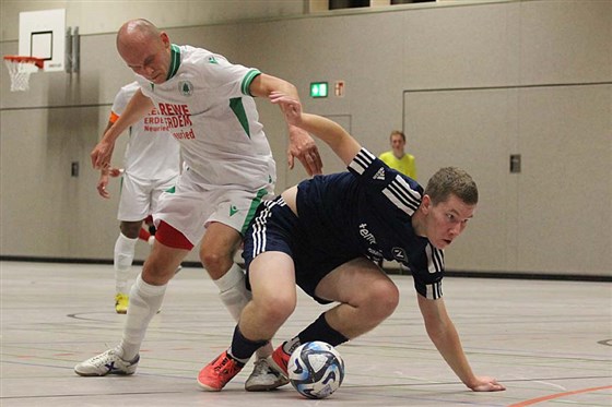 Maksim Fröhlich (am Ball) traf mit seinem ersten Futsal-Tor zum zwischenzeitlichen 2:2-Ausgleich und leitete damit den Umschwung von Futsal Nürnberg gegen keinesfalls enttäuschende Gäste ein.