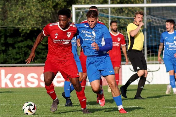 Leonardo de Horta Puerta (in rot, hier gegen die SpVgg Zeckern) schoss seine Farben beim Gastspiel in Tennenlohe mit einem Doppelpack zum 2:0-Auswärtssieg.