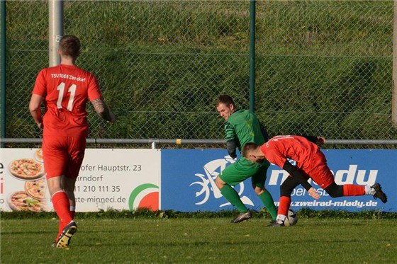 Der TSV Zirndorf (in rot) legte sich nach der 1:6-Hinspielklatsche im Rückspiel gegen Spitzenreiter ASV Weinzierlein ins Zeug und war durch das 1:1-Remis das erste Team, das dem Primus Punkte abnehmen konnte. Kurz vor Spielschluss wurde den Hausherren gar noch die Siegchance wegen einer vermeintlichen Abseitsstellung zurückgepfiffen.