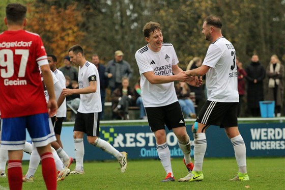Julius Schöniger (Nr. 19) durfte sich für seinen Siegtreffer feiern lassen.