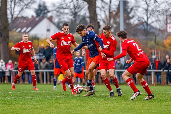 Auch wenn die SG Quelle Fürth (in blau) über weite Strecken mehr von der Partie hatte, am Ende nahmen die Gäste aus Unterreichenbach (in rot) trotz langer Unterzahl durch ein 0:1 die Punkte mit auf die Heimreise.