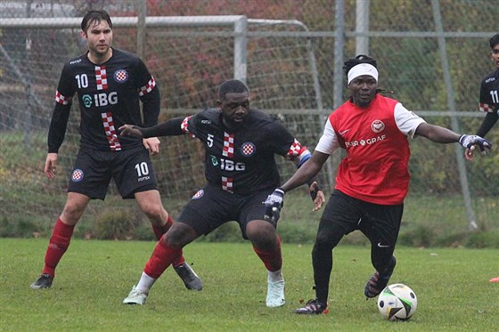 Eminent wichtige Punkte verbuchte im Keller die DJK Eibach II (in rot), die gegen den KSD Hajduk II (blau) zu einem 2:1-Heimerfolg kam. Durch den zweiten Sieg in Folge verschafften sich die Eibacher ein kleines Polster gegenüber der Abstiegszone.