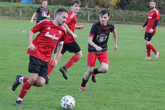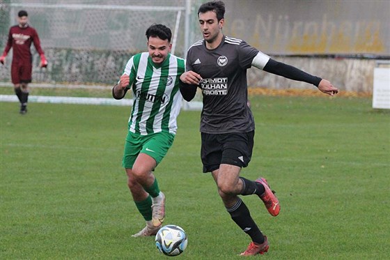Mit Tuspo Nürnberg jubelte noch ein weiteres Kellerkind über drei Zähler: Sebastian Scheuerer (am Ball) und Co. hatten letztlich mit 1:0 die Nase gegenüber dem STV Deutenbach (in schwarz) vorne.