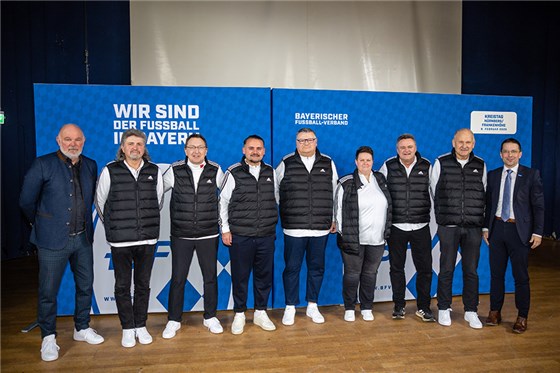 Der Kreis-Ausschuss Nürnberg/Frankenhöhe (v.l.): Uwe Mauckner (Bezirks-Vorsitzender Mittelfranken), Peter Kuhn (Kreis-Jugendleiter), Andreas Krimm (Kreis-Schiedsrichterobmann), Tamer Amet (Kreis-Spielleiter), Günter Schuh (Kreis-Vorsitzender), Katrin Steinbauer (Kreis-Beauftragte für den Frauen- und Mädchenfußball), Jörg Salzer (Kreis-Ehrenamtsbeauftragter), Karlheinz Assenbaum (Vorsitzender des Kreis-Sportgerichts) und BFV-Präsident Christoph Kern.