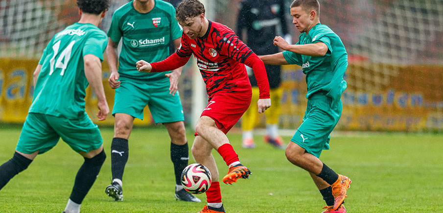 Der ASV Vach (in rot) gewann sein Heimspiel gegen das Kellerkind vom Baiersdorfer SV mit 4:2 und verteidigte Rang drei in der Tabelle, wo die Luft für die Krenkicker im Keller dünn wird.