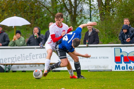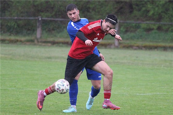 Der STV Deutenbach konnte unterdessen wichtige drei Punkte im Abstiegskampf verzeichnen und bezwang – auch dank eines Traumtores von Yannick Müller (in Weiß) – den ESV Rangierbahnhof (in Blau) mit 2:0. Während sich die Deutenbacher etwas Luft verschaffen, stecken die Rangers weiterhin tief im Keller fest.