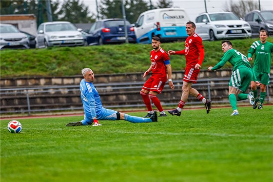 Möglich wurde das, weil auch Konkurrent Vatanspor ohne Zähler blieb: Die Mannschaft von Ismail Yüce und Hayri Özdemir musste sich überraschend beim ASV Veitsbronn-Siegelsdorf mit 1:2 geschlagen geben. Winter-Rückkehrer Julian Henke (in grün) gelang in dieser Szene der Siegtreffer und half somit mit, dass Veitsbronn durch den Überraschungscoup über den Strich klettert.