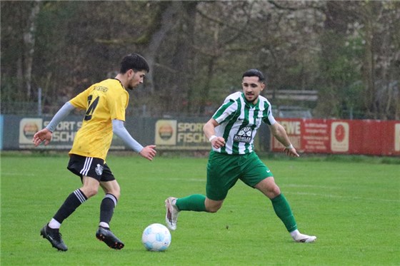 Der ESV Flügelrad (in grau, hier gegen den TSV Fischbach) musste sich beim Tabellenletzten 1. FC Trafowerk mit einer torlosen Punkteteilung zufrieden geben und verpasste einen Befreiungsschlag im Tabellenkeller.