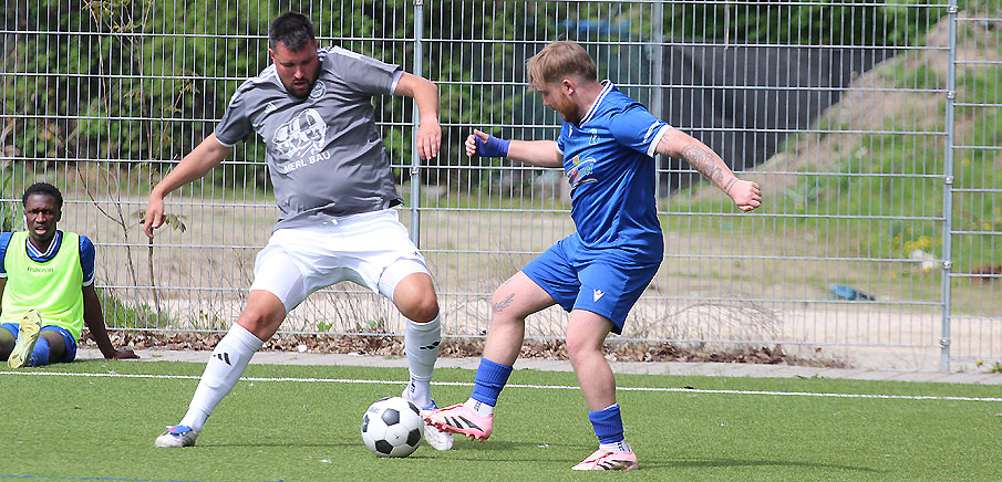 Die Luft für Schlusslicht FC Bosna II wird derweil dünner. Die Bosnier hatten bei ihrem Gastspiel gegen den zweifachen Torschützen Torsten Wuttke (am Ball) und Bayern Kickers II nicht nur in dieser Szene das Nachsehen, sondern unterlagen mit 2:3. Die Kickers feierten damit endlich den ersten Dreier im Jahr 2026, Bosna II verpasste es dagegen, sich an der spielfreien DJK Eibach II vorbeizuschieben.