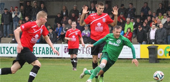 Bastian Weiß (in grün, hier im Duell mit Manuel Stark) hatte den Ehrentreffer auf dem Fuß.