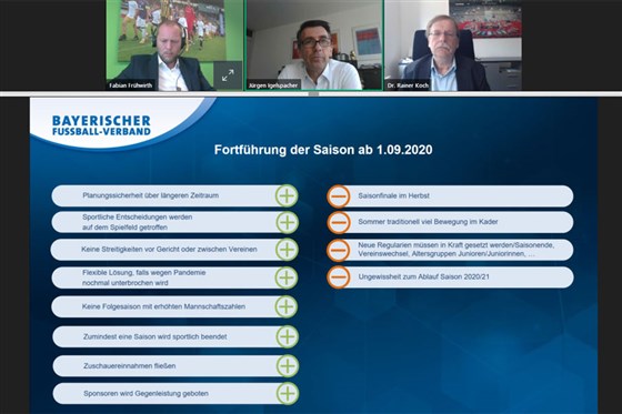 Dr. Rainer Koch: Der Verbandsvorschlag gilt für den Erwachsenenspielbetrieb (Herren, Frauen) von der Bayernliga abwärts. Die Regionalliga hängt von den DFL-Entscheidungen ab (wie geht es mit der 3. Liga weiter). Es wird definitiv keine Geisterspiele in der Regionalliga Bayern gehen und es geht auch dort erst am 01.09. los.