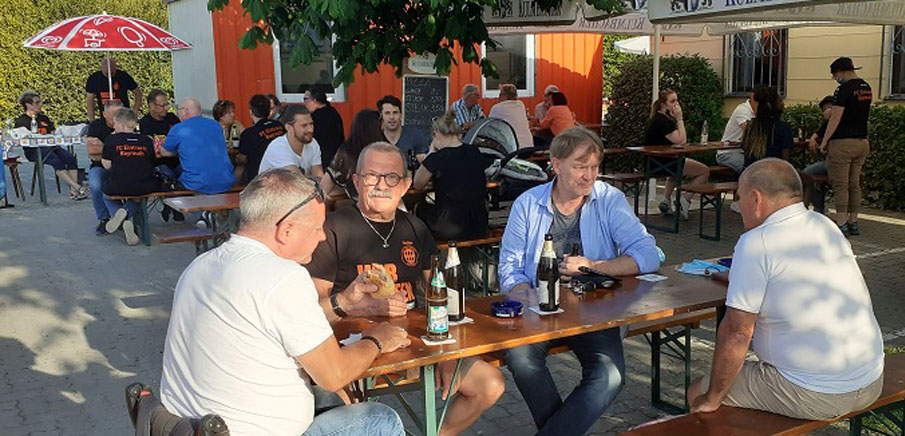 Die offizielle Eröffnung des Eintracht-Biergartens am vergangenen Samstag war ein voller Erfolg. Bereits um 20 Uhr waren die Bratwürste ausverkauft und die Nachtschwärmer genossen die laue Sommernacht noch weit darüber hinaus. "Wir haben jetzt erst einmal nichts weiter geplant, denn wir lassen die Veranstastung noch einmal Revue passieren und ziehen daraus unsere Schlüsse", meinte Norbert Schmidt, der sich an diesem Abend in bestere Gesellschaft - unter anderem mit Frank "Molle" Borger und dem früheren Schiedsrichter Andreas Kreyßig - befand. Doch der langjährige Eintrachtler blickt inzwischen auch vorne. "In der Vergangenheit habe ich ja immer den Preisschafkopf organisiert. Der ist am Gründonnerstag wegen Corona ausgefallen. Gut möglich, dass wir ihn diesen Sommer nachholen und dabei in den Biergarten gehen."