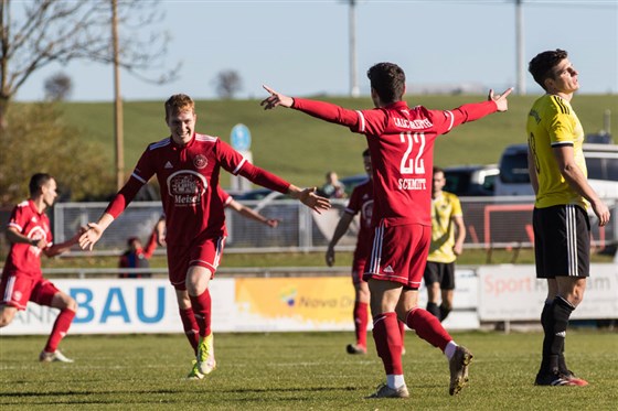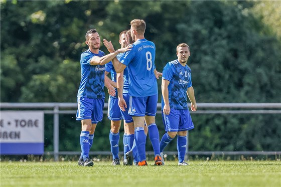 Rene Schmitt durfte sich für seinen frühen Führungstreffer auf der Kalchreuther Alm feiern lassen.