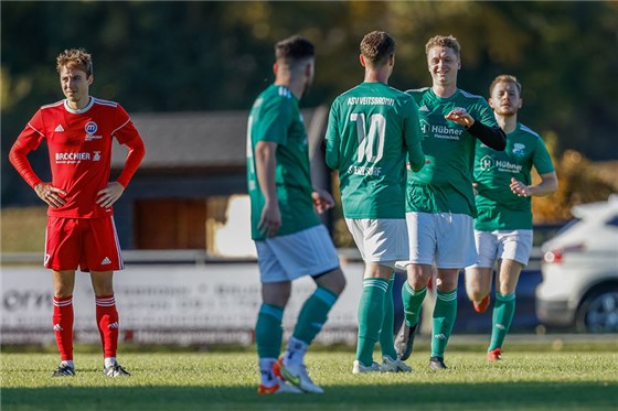 Steffen Pfau (2.v.r.) gelang der Führungstreffer für Veitsbronn im Heimspiel gegen Mögeldorf.