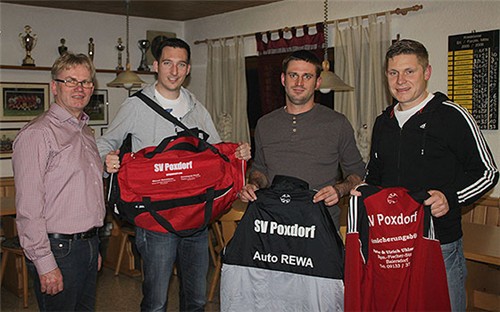 Einige Sponsoren haben sich bereit erklärt die komplette 1. und 2. Mannschaft des SV Poxdorf zu unterstützen. Die Versicherungsagentur Allianz Uhlmann aus Baiersdorf übernahm für beide Mannschaften die Trainingsanzüge. Hinzu kamen auch neue Fußballtaschen für alle Spieler von den Firmen Metallbau Blesel und Zimmerei Kaul, beide aus Poxdorf. Das ganze rundete die REWA-KFZ Werkstatt Watollik aus Hagenau ab und steuerte jeweils 3 Winterjacken pro Mannschaft für die Auswechselspieler hinzu. Auch die beiden Spielleiter sollen nicht frieren und bekamen auch jeweils eine Jacke.