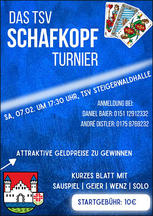 Der TSV Burgebrach lädt zu seinem Schafkopf-Rennen in die Steigerwaldhalle ein!