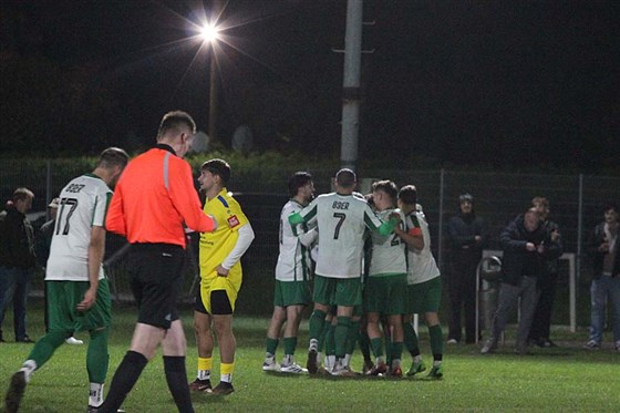 In einem Kreisliga-Spiel, das nichts für Feinschmecker war, führten die favorisierten 83er (in weiß) zur Pause mit 2:0. Hier bejubeln die Hausherren Sharghis Tor kurz vor der Pause.