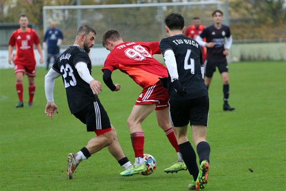 Der TSV Sack (in rot, hier gegen den TSV Buch II) um Luca Morawetz holte im Kellerduell mit Eintracht Falkenheim einen 6:3-Erfolg und sprang an den Falkenheimern vorbei ans rettende Ufer.