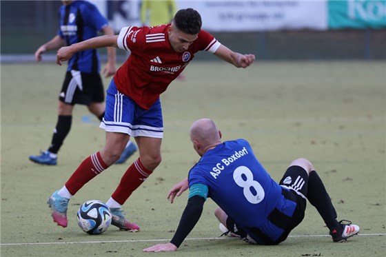 Bereits am Samstagnachmittag rang die SpVgg Mögeldorf 2000 II (in rot) um Melih Gecim den ASC Boxdorf um Oliver Karl nieder. Auf dem Mögeldorfer Kunstrasen feierte die Hils-Elf einen 4:1-Heimsieg und behauptete Platz zwei in der Tabelle.