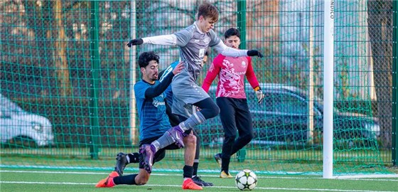 Sportfreunde Torhüter Omran Mansour (in rot) gab eine unglückliche Figur beim ersten Gegentreffer ab.