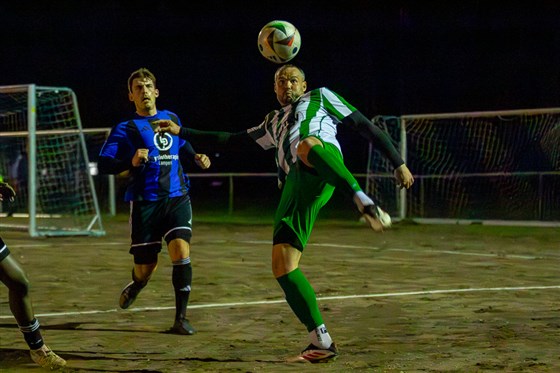 Routinier Heinrich Rudt (in grün-weiß) traf bereits in den Anfangsminuten für den TSV Johannis 83 zur Führung und leitete damit eine starke erste Hälfte des Primus beim ESV Rangierbahnhof (in blau-schwarz) ein. Die 83er siegten beim Kellerkind letztlich souverän mit 4:0.