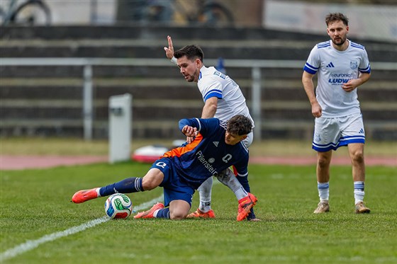 Die SG Quelle Fürth um David Griu (in blau) hatten im Heimspiel gegen den TSV Windeck 1861 Burgebrach (in weiß) einen schweren Stand und leisteten sich zu viele einfache Fehler. Die Gäste wussten diese zu bestrafen und nahmen am Ende durch ein 2:3 die Zähler mit auf die Heimreise.