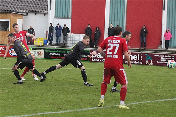 Der TSV Buch musste im Abstiegskracher gegen den SV Lauterhofen einen späten Rückschlag hinnehmen und kam trotz klarer Überlegenheit am Ende nur zu einem 1:1-Remis. In einer umkämpften Partie waren Chancen im ersten Abschnitt selten. Den ersten guten Abschluss der Partie verzeichnete Buchs Richardson nach 19 Minuten, doch war Gäste-Keeper Wildfeuer unten und wehrte ab. Auf der Gegenseite kam Lauterhofen durch Scherer nach 37 Minuten recht aussichtsreich zum Schuss, doch dessen Versuch halblinks im Strafraum misslang und ging klar am kurzen Eck vorbei. Kurz vor der Pause sollte dann ein Eckball die Führung der Heimelf bedeuten, als die Hereingabe von Sormaz über Umwege beim aufgerückten TSV-Kapitän Stefan Fleischmann landete und dieser die Lücke zum 1:0 fand.