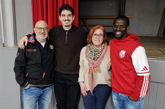 ASV-Vorstand Stephan Engel (l.) mit der neuen Fußball-Abteilungsleitung: André Robl (stv. Abteilungsleiter), Nina Dreßel (Kassier) und Oumar Dieng (Abteilungsleiter).