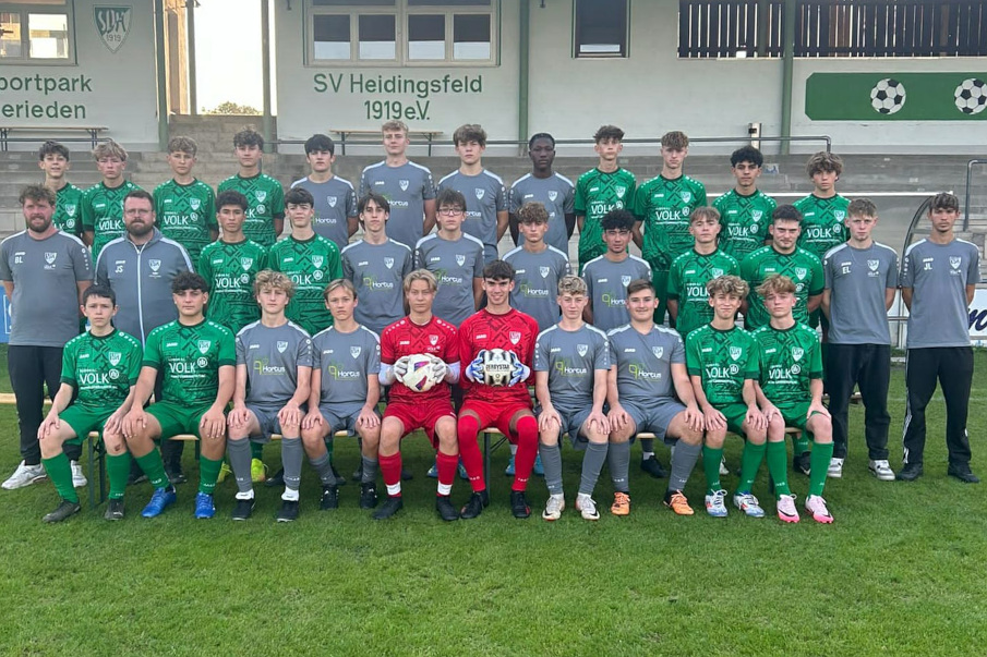 Die U-17 des SV Heidingsfeld in der Saison 2024/25 mit Trainer Björn Lamprecht (li.).