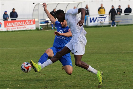 Auch der FC Bayern Kickers um Torjäger Baba Diarra (in weiß) musste diesmal mit einem Punkt leben: Die Kickers kamen zuhause gegen den FC Bosna (in blau) nicht über ein 1:1-Unentschieden hinaus - für die Bosnier ein weiterer wichtiger Zähler im Abstiegskampf.
